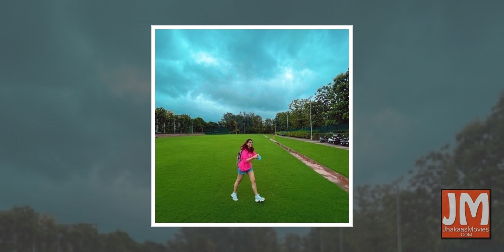 The pictures she shared are from a sports stadium ground.