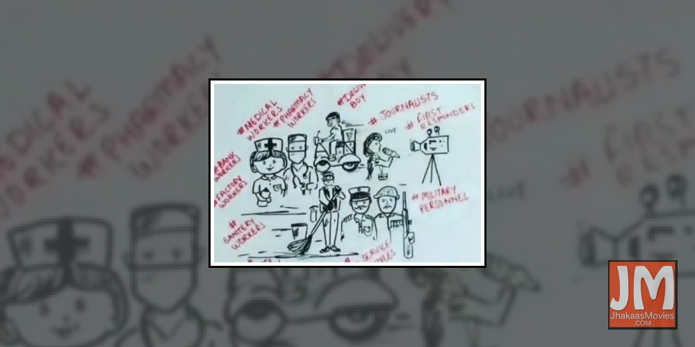 While the hand shown in the video makes a sketch thanking the above section of people, a couple of lines from the song "Teri mitti" from the film "Kesari" plays in the background.