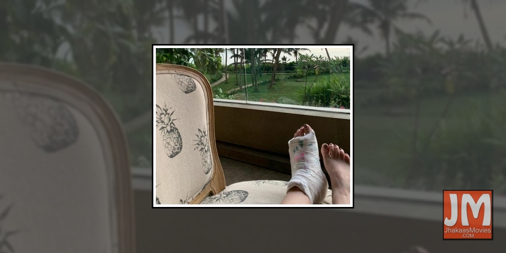 Taking to her Instagram account, Twinkle posted a picture in which she can be seen sitting on an armchair and enjoying the sea-view with her injured foot resting on a chair.