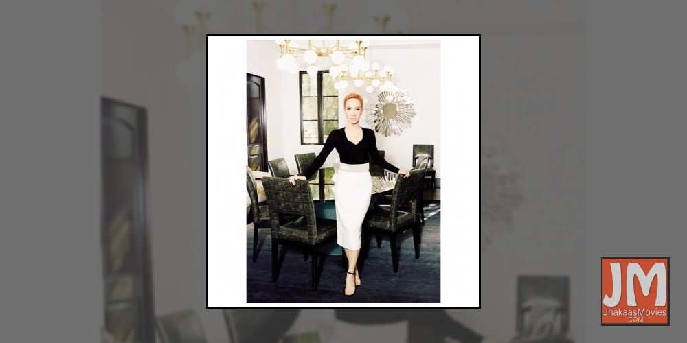 Griffin wore a pearly white, short-sleeved gown by Diane Von Furstenberg with earrings by Erica Courtney.