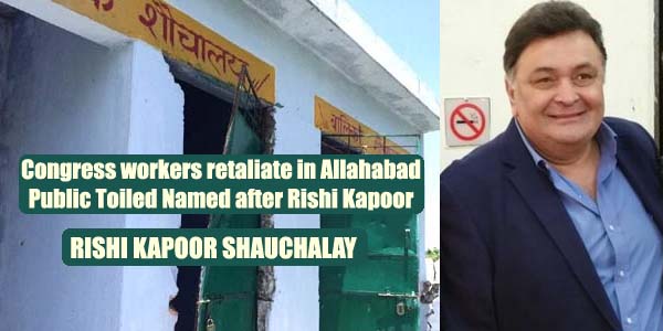 Allahabad (UP): Congress supporters name public toilet after Rishi Kapoor in response to the actor's tweet pic.twitter.com/xuXFi7gj9u